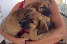 Tory and Mei are brother and sister mixed-breed puppies, around 4 months old. They