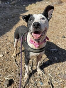 Perdy is a lovely girl, she gets on with all dogs. She came to us with fur missing and was on medication for the skin for a long time. She has a flea allergy and needs regular flea prevention.